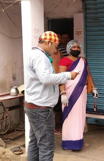 गांव के लोगों से मास्क पहनने व बार-बार...